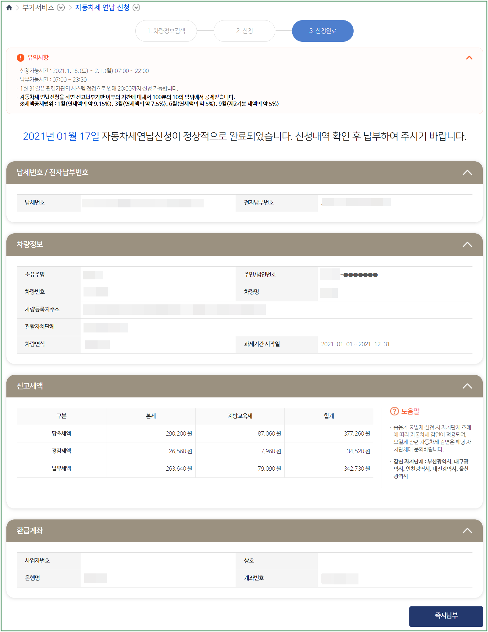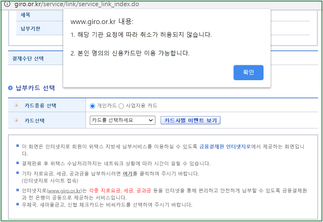 그러나 즉시납부를 시행하고 신용카드로 결제한 이후에는 승인 취소는 불가능하니 잘 선택하시고 결정하시기 바랍니다.