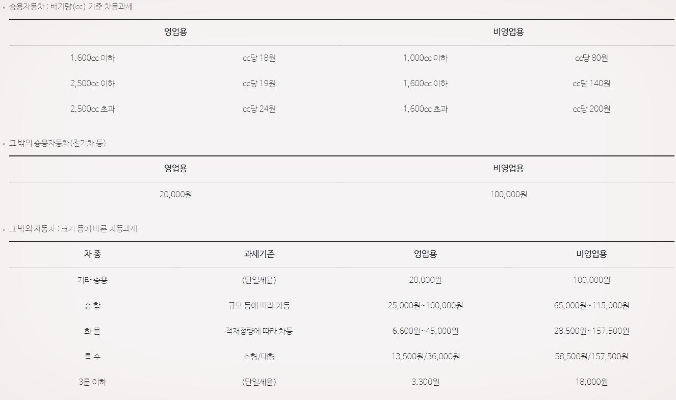 참고로 자동차세 세율은 다음과 같습니다.