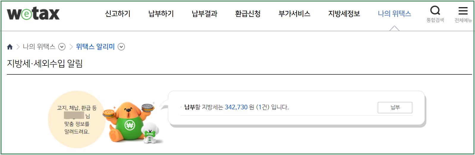 보통 매년 1월 초에 위택스에 접속하여 로그인을 하면 나의 위택스 메뉴에서 본인이 납부할 지방세를 확인할 수 있습니다.