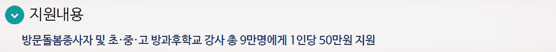 방문돌봄종사자와 방과후 강사 등 9만명을 대상으로 1인당 50만원을 지원합니다.