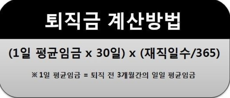 여러가지 다양한 계산 방법이 있지만 가장 간단한 퇴직금 계산방법은 "근속연수 x 퇴직직전 3개월간의 평균 임금"으로 구할 수 있습니다.