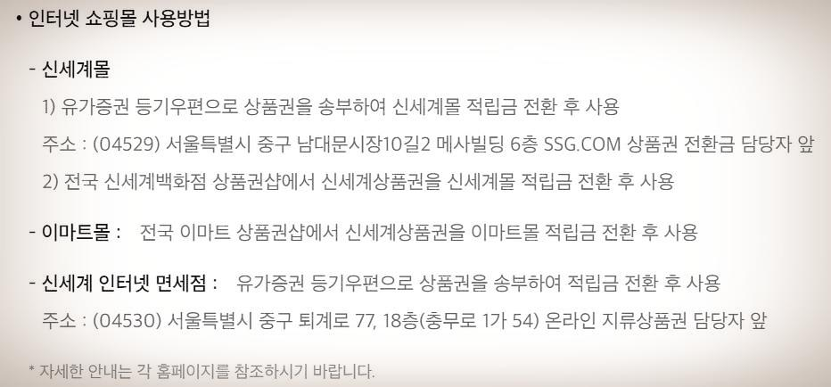 유의하실 점은 이런 인터넷 쇼핑몰에서는 상품권을 등기우편으로 송부하여 적림금으로 전환 후에 사용할 수 있습니다.